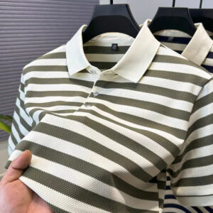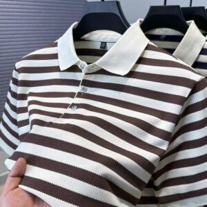 High quality striped color blocked short sleeve polo T-shirt